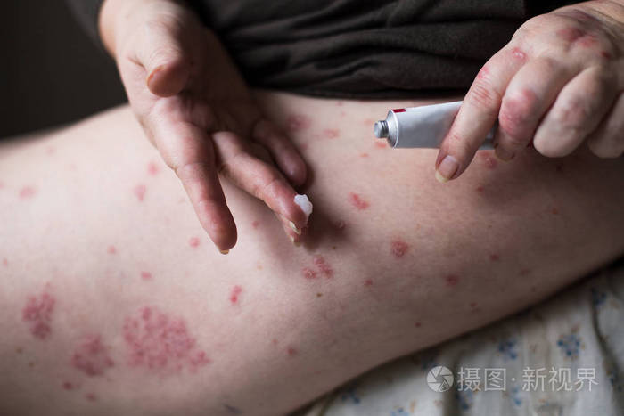 在治疗牛皮癣 湿疹和其他干燥皮肤的情况下 应用润肤剂干燥片状皮肤 健康理念照片 正版商用图片07g6f0 摄图新视界